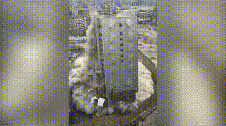 Đoạn clip trên quay cảnh một tòa nhà cao 15 tầng bị phá hủy. Chỉ trong vòng 10 giây ngắn ngủi, cả tòa nhà đang đứng sừng sững bỗng biến mất trong khói bụi. Đoạn video sau khi đăng tải trên mạng xã hội đã thu hút đông đảo sự quan tâm của cộng đồng mạng Trung Quốc.