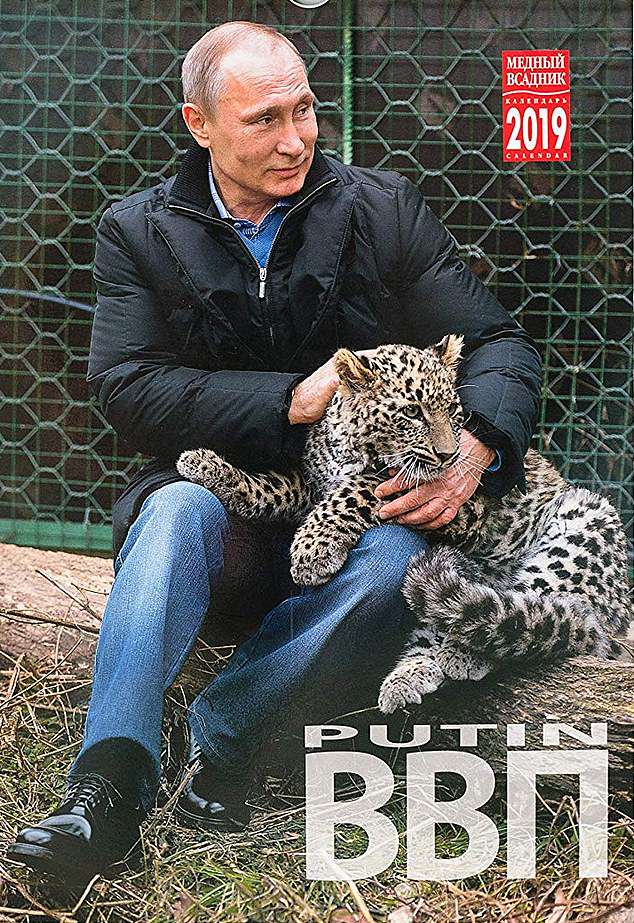 Theo Daily Mail, ảnh bìa của bộ lịch năm 2019 (Tổng thống Nga đang vuốt ve một con báo non trên đùi) thực chất được chụp từ năm 2014 tại vườn quốc gia Sochi và nó cũng từng xuất hiện ở bộ lịch năm 2018.