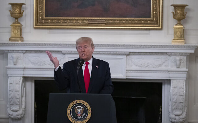 Tổng thống Trump phát biểu trước báo giới hôm 10/2. Ảnh: AP