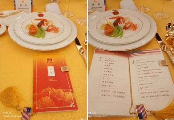 Thực đơn quốc yến Trung Quốc thiết đãi Tổng thống Trump.