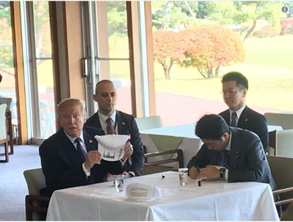 Vào ngày 5/11, Tổng thống Mỹ Donald Trump bắt đầu chuyến công tới châu Á và địa điểm ông đặt chân tới đầu tiên chính là Nhật Bản. Trưa hôm đó, Tổng thống Trump và Thủ tướng Nhật Bản Shinzo Abe đã cùng nhau ăn trưa.