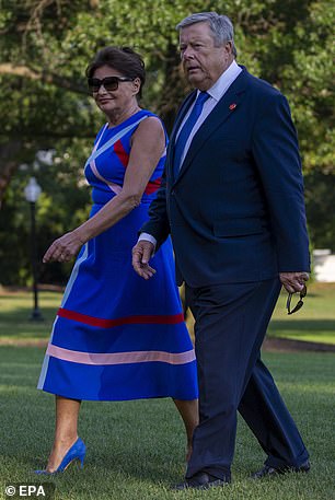 Đồng hành với họ trong chuyến đi là ông bà ngoại của Barron, Amalija và Viktor Knavs.