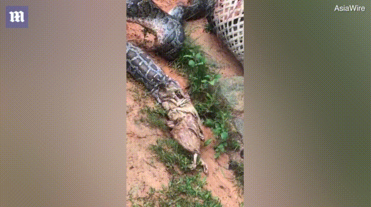 Cận cảnh trăn nôn trả người dân 5 con gà.