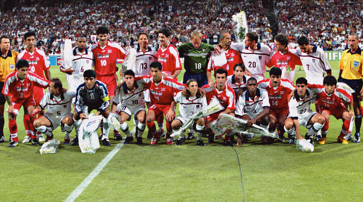 Khi hai đội chuẩn bị bước vào trận đấu, mọi thứ diễn ra đúng như mong muốn của FIFA và Liên đoàn Bóng đá Iran. Đó là việc các cầu thủ Iran tặng hoa cho cầu thủ đội Mỹ và cả hai đội cùng chụp ảnh chung. Đó là khoảnh khắc đã thay đổi hoàn toàn lịch sử giải đấu bóng đá hấp dẫn nhất hành tinh.