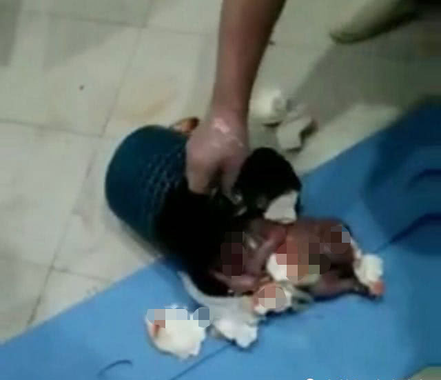 Đoạn video xuất hiện trên mạng xã hội Weibo cho thấy, một nhân viên y tá đã nhẹ nhàng đổ chiếc thùng đựng rác có chứa đứa trẻ ra một tấm thảm màu xanh được trải trên sàn nhà. Sau đó, cô cẩn thận gỡ từng mẩu giấy đầy máu dính khắp người em bé, trong khi đứa bé vẫn đang khóc.