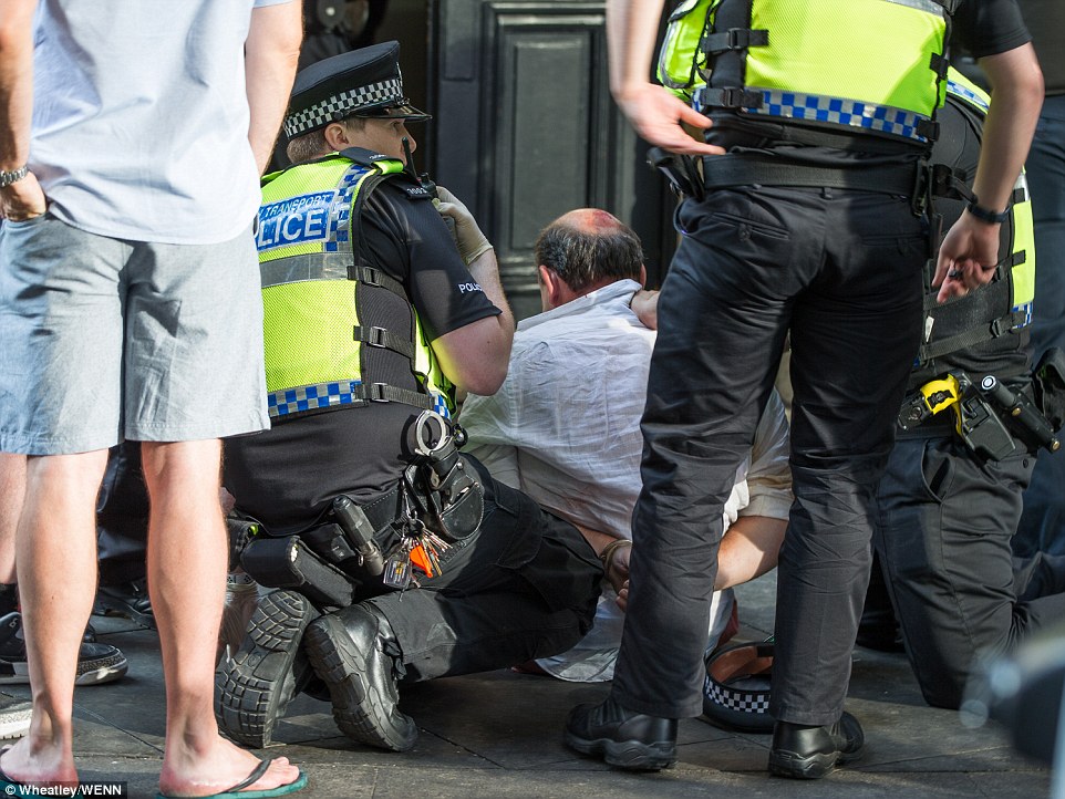 Thậm chí có người còn treo lên cột đèn sau khi say. Một số người đã bị cảnh sát bắt giữ gần ga tàu điện ngầm London Bridge vì những màn ăn mừng quá khích.
