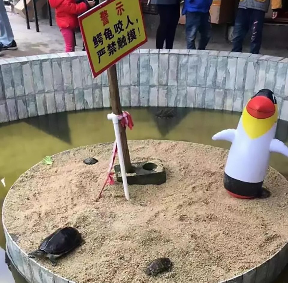 Du khách mới đây đổ xô tới một sở thú ở thị trấn Ngọc Lâm, Quảng Tây, Trung Quốc để xem những chú chim cánh cụt được mang về từ Nam Cực. Tuy nhiên, khi tới nơi ai ai cũng đều tức giận vì sở thú này đã “treo đầu dê bán thịt chó”. Không thấy chim cánh cụt từ Nam Cực đâu, tới nơi họ chỉ thấy những chú chim cách cụt bơm hơi để thay thế.