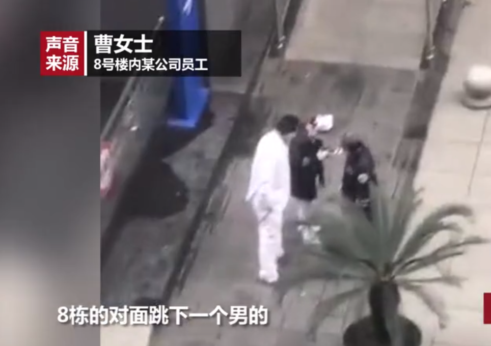 Nguyên nhân được cho là do bức xúc với công ty, cô gái muốn nhảy lầu để chấm dứt mọi chuyện. Thấy cô gái leo lên ban cộng định tự tủ, người dân khu vực nhanh chóng có mặt tại tòa nhà và liên lạc với lực lượng cứu hộ. Tuy vậy, khi cô gái vẫn còn đang khóc lóc thảm thiết và lưỡng lự có nên nhảy hay không, thì một người đàn ông bất ngờ rơi xuống từ tầng 9 và tử vong ngay tại chỗ trước sự ngỡ ngàng của mọi người.