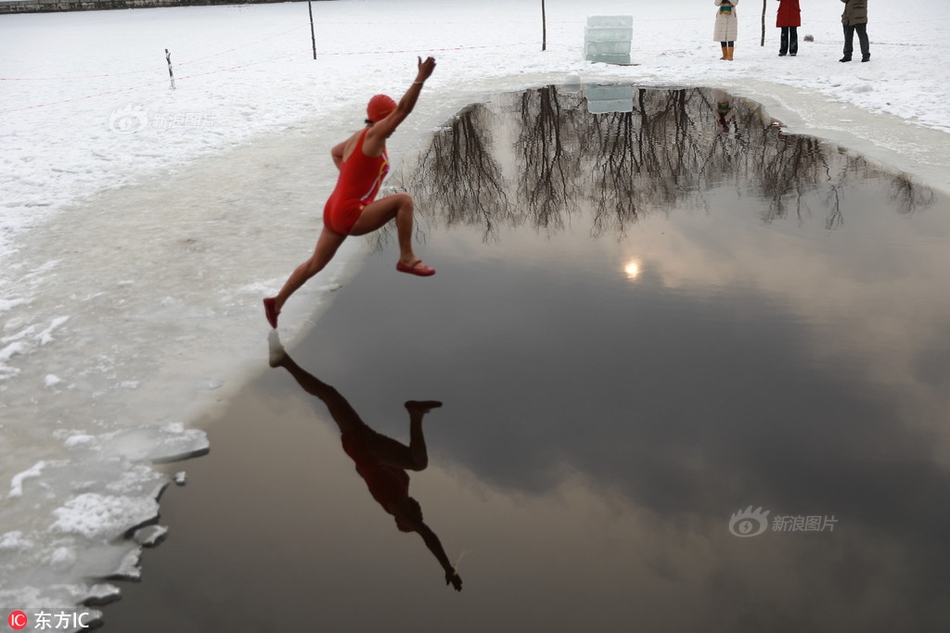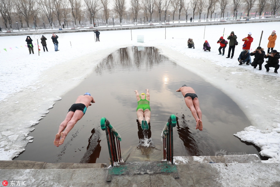 Cuộc thi bơi trong hồ băng diễn ra tại Thẩm Châu, Liêu Ninh, Trung Quốc, hôm 5/1. Mặc dù nhiệt độ tại đây xuống còn -20 độ C nhưng các thí sinh vẫn lao xuống hồ băng lạnh.
