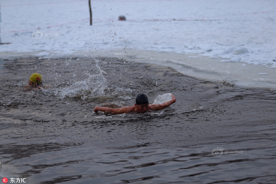 Một thí sinh đang bơi lội trong hồ nước lạnh -20 độ C.