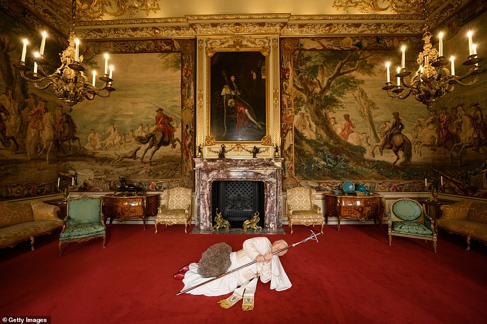 Và Giáo hoàng John Paul II bị thiên thạch va phải cũng xuất hiện trong cung điện.