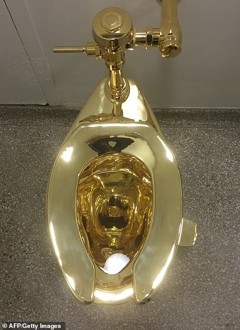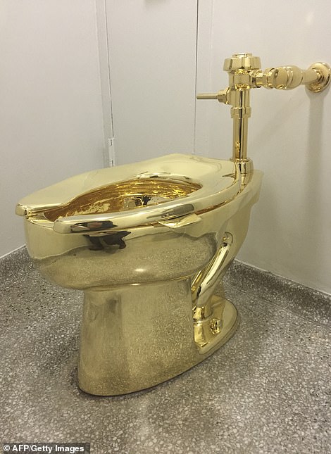 Sau 2 ngày trưng bày, toilet bất ngờ bị đánh cắp. Cảnh sát Thames Valley đã bắt giữ một người đàn ông 66 tuổi nghi có liên quan đến vụ trộm này. Dominic Hare, giám đốc điều hành tại Cung điện Blenheim, khẳng định đây là một tác phẩm hết sức giá trị, hành vi trộm cắp của bọn tội phạm đã khiến nơi này chịu tổn thất nặng nề. “Các nhân viên mau chóng hiểu được mức độ nghiêm trọng của tình hình, cảnh sát cũng đến rất nhanh”, ông nói.