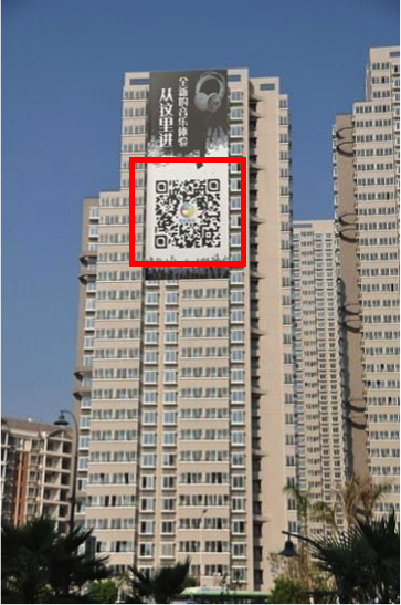Năm 2012, một tấm biến quảng cáo cho một ứng dụng nghe nhạc dưới dạng một mã QR khổng lồ bất ngờ xuất hiện tại Trung Quốc. Quảng cáo này đã rất thành công, nó có thể được scan cho dù khoảng cách là rất xa, nhanh và tiện hơn việc phải nhớ đường link và gõ vào trình duyệt.