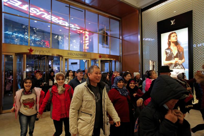 Người dân ùa vào trung tâm mua sắm ở Manhattan, New York, khi cánh cửa vừa mở.