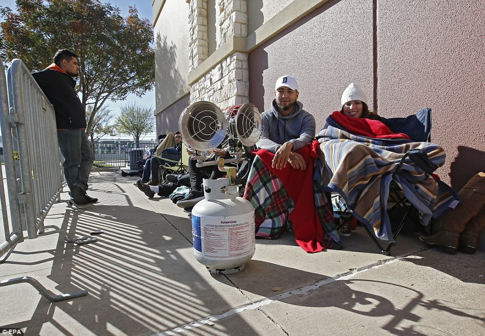Hàng nghìn người tiến đến các cửa hàng quàn áo, thời trang hay đồ dân dụng và nhặt nhạnh nhanh nhất có thể những món đồ giảm giá tối đa tới 70-80%. Để chuẩn bị cho “cuộc chiến” này, một cặp đôi thậm chí còn mang theo cả lò sưởi xếp hàng trước cửa hàng Best Buy.