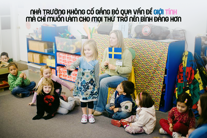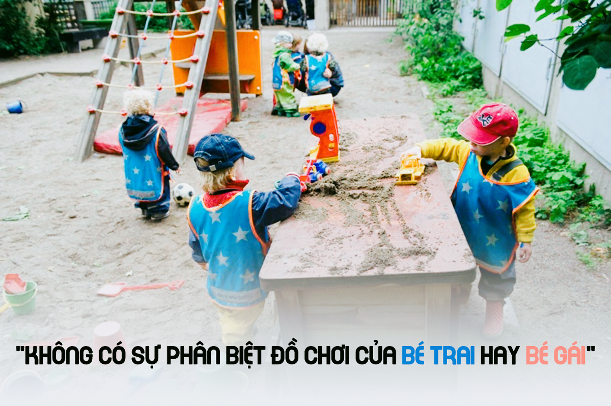 Ở nhà trẻ Egalia tại thủ đô Stockholm, Thụy Điển, cảnh tượng những những cô bé nhỏ nhắn xinh xắn cưỡi khủng long đánh trận, hay những chiếc xe tải chở đầy vòng tay đủ màu sắc và những chú khủng long khè lửa hung tợn vắt vẻo trên đoàn tàu gỗ thanh bình là chuyện hết sức bình thường mỗi ngày.