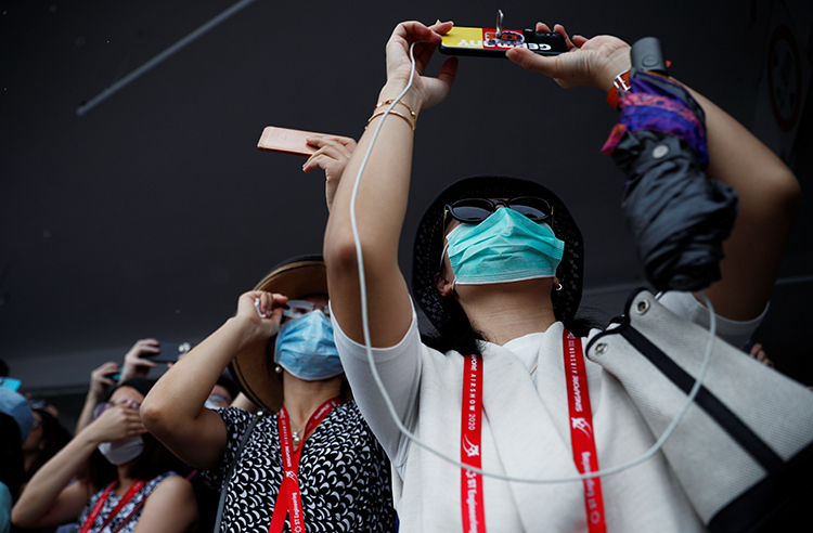 Khách tham quan đeo khẩu trang tại Triển lãm Hàng không Singapore hôm 11/2. Ảnh: Reuters