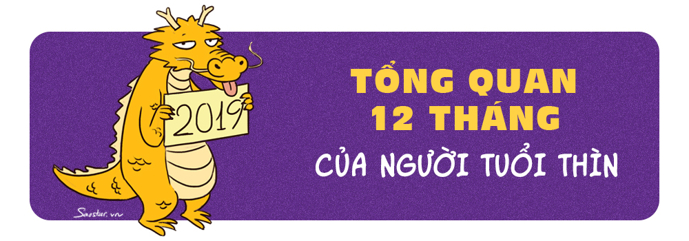 Tháng Giêng: Trong tháng đầu năm Kỷ Hợi 2019, tuổi Thìn sẽ phải đối mặt với không ít khó khăn. Khối lượng công việc ngày càng nhiều và áp lực, có nhiều vấn đề phát sinh khiến bạn trở tay không kịp. Tài vận ở mức trung bình, có thể sẽ có những khoản phát sinh rất lớn. Tuổi Thìn nên thận trọng khi đầu tư hoặc cho vay tiền trong khoảng thời gian này.
