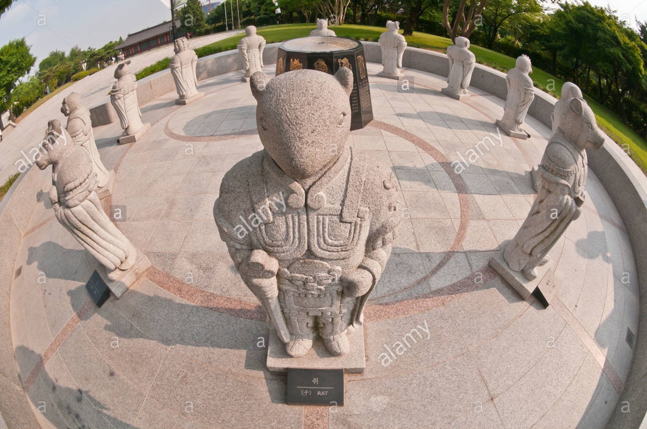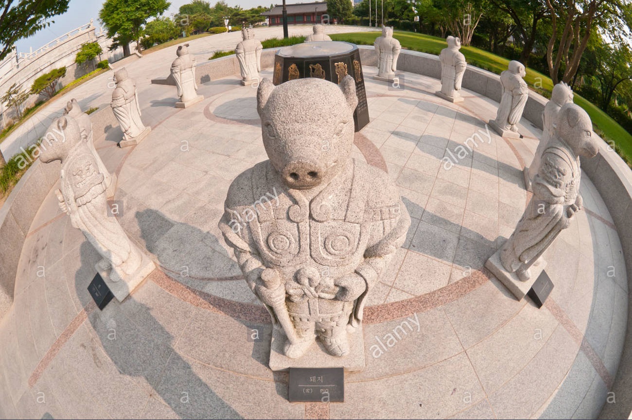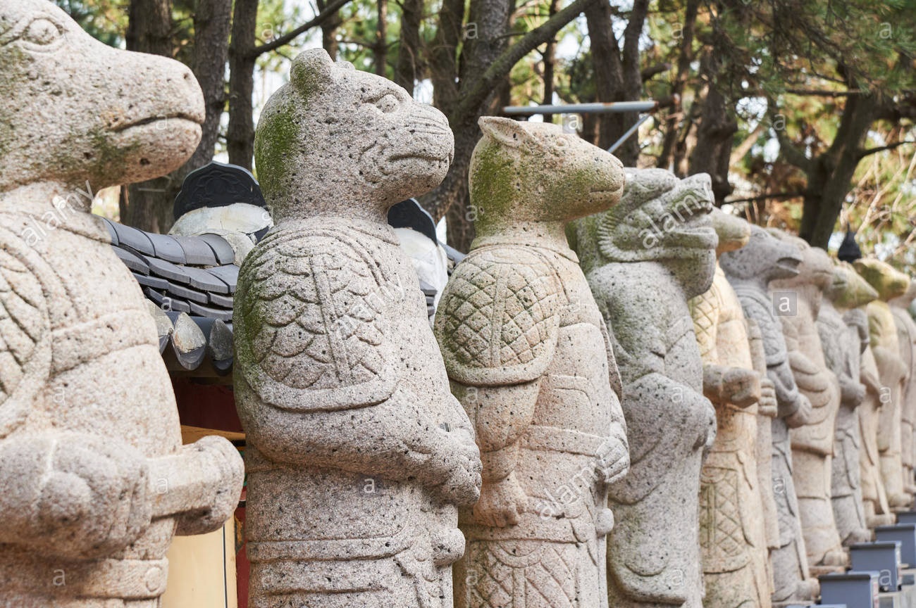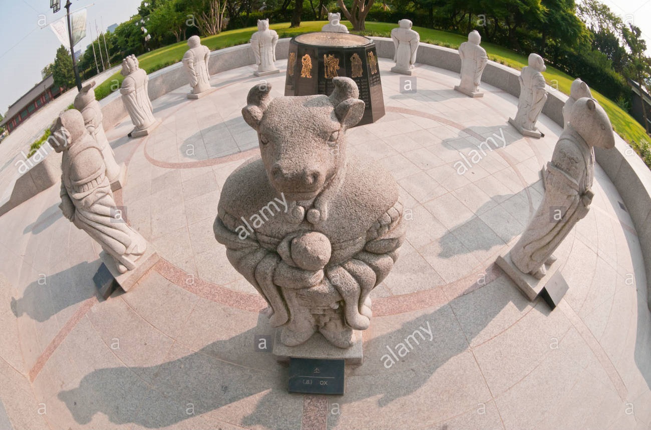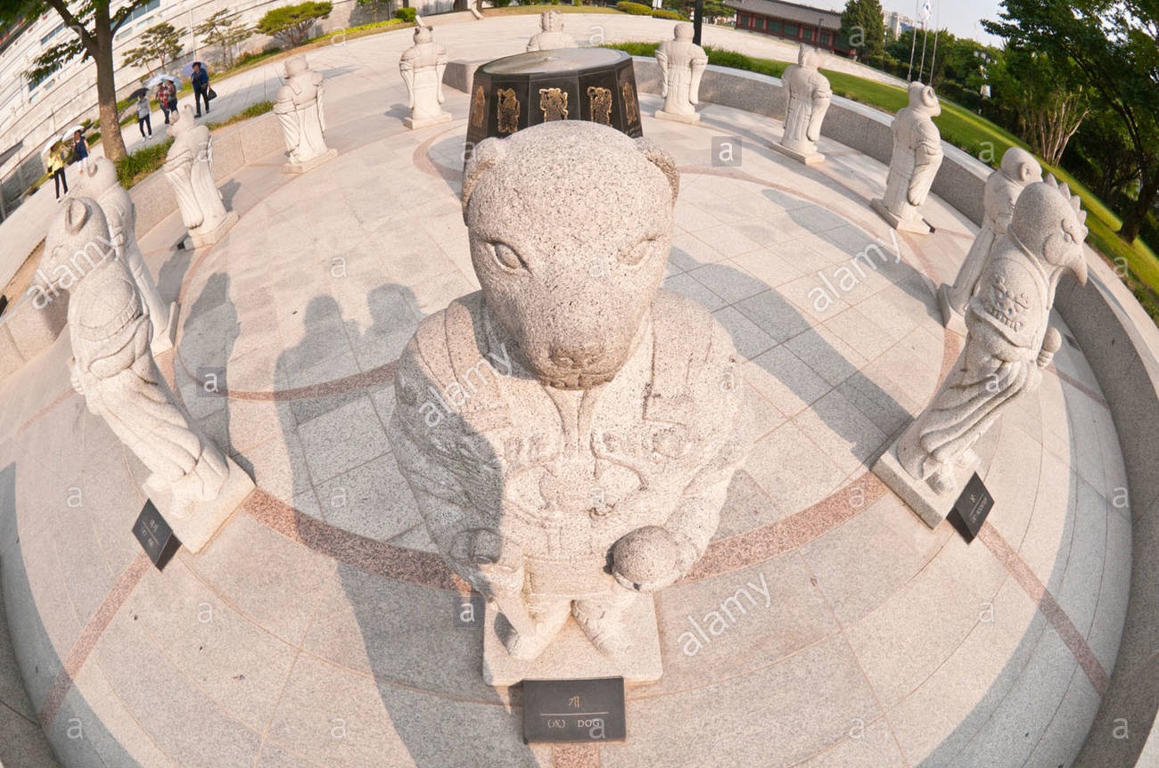 Không chỉ Trung Quốc mà ngay cả Hàn Quốc cũng trưng bày những bức tượng được điêu khắc theo 12 con giáp. Những bức tượng này được đặt bên ngoài Bảo tàng Dân tộc Quốc gia, thủ đô Seoul. Ảnh: Alamy