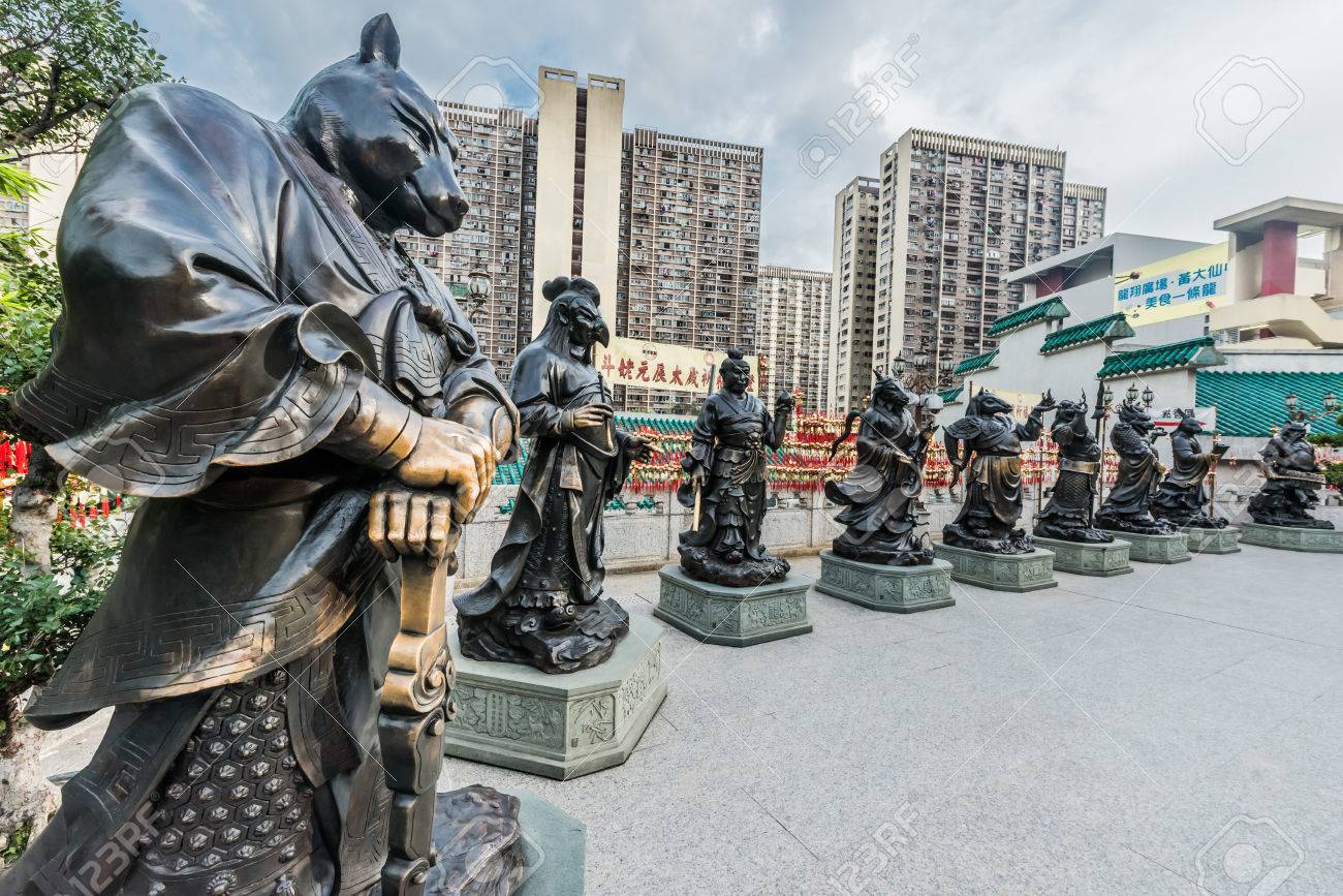 Những bức tượng 12 con giáp này được đặt tại ngôi chùa nổi tiếng linh thiêng - Huỳnh Đại Tiên ở Hong Kong (Trung Quốc). Ảnh: Lense Moments