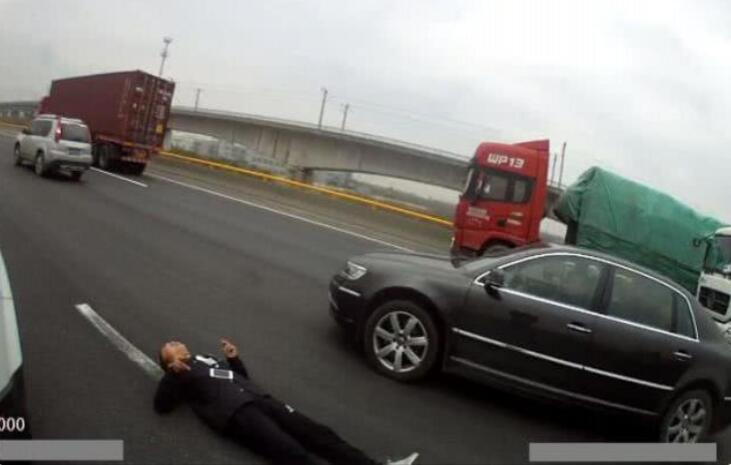 Vào chiều 19/12, một chiếc Land Rover đang di chuyển với tốc độ nhanh trên đường cao tốc Thượng Hải - Hàng Châu, tỉnh Chiết Giang, Trung Quốc thì đột ngột dừng lại giữa đường. Sau đó, một người đàn ông bước ra khỏi xe và nằm sóng soài giữa đường, nhất quyết không chịu đứng dậy.