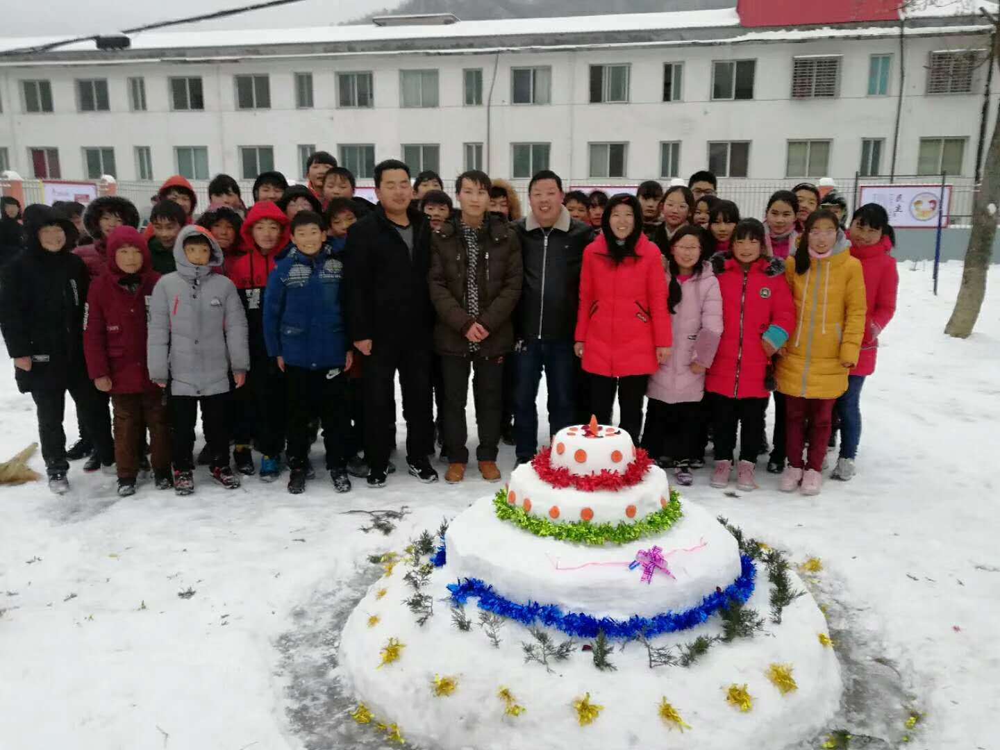 Không chỉ có hình người tuyết quen thuộc, thầy trò nơi đây còn đắp cả bánh sinh nhật khổng lồ.