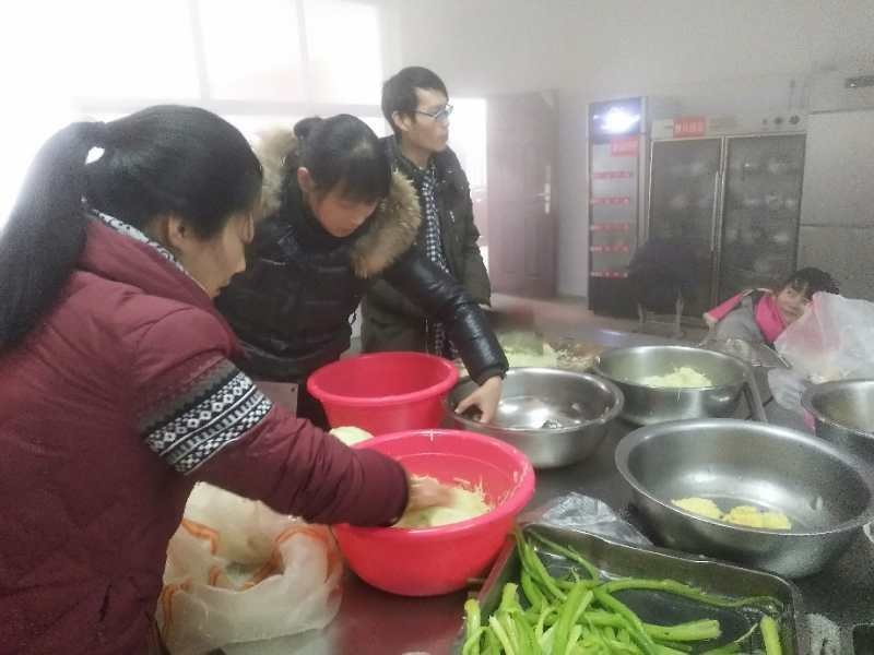 Sau khi làm xong nhân, họ lại tiếp tục cùng nhau nặn bánh.