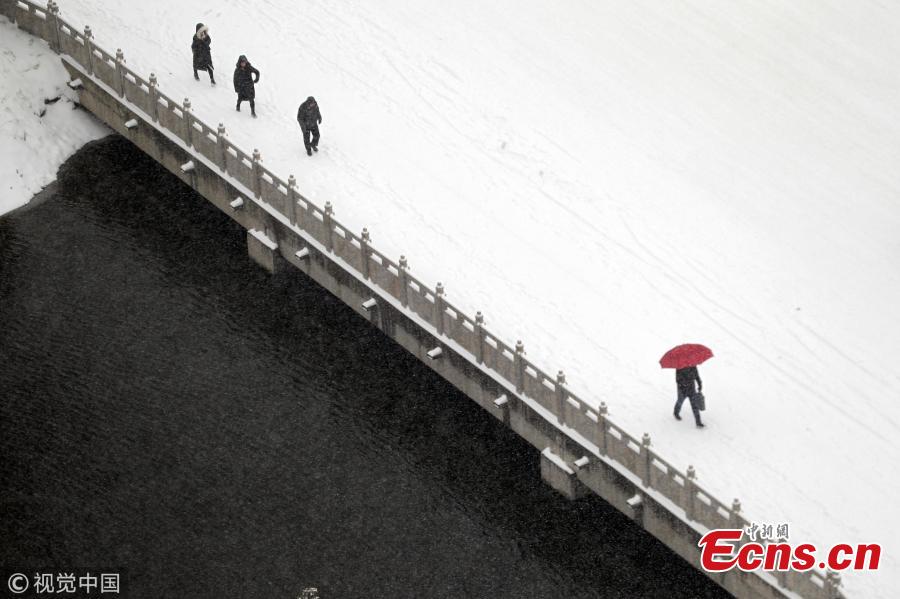 Tuyết bao phủ trắng xóa tại khu vực công cộng ở Hồ Bắc, Trung Quốc.