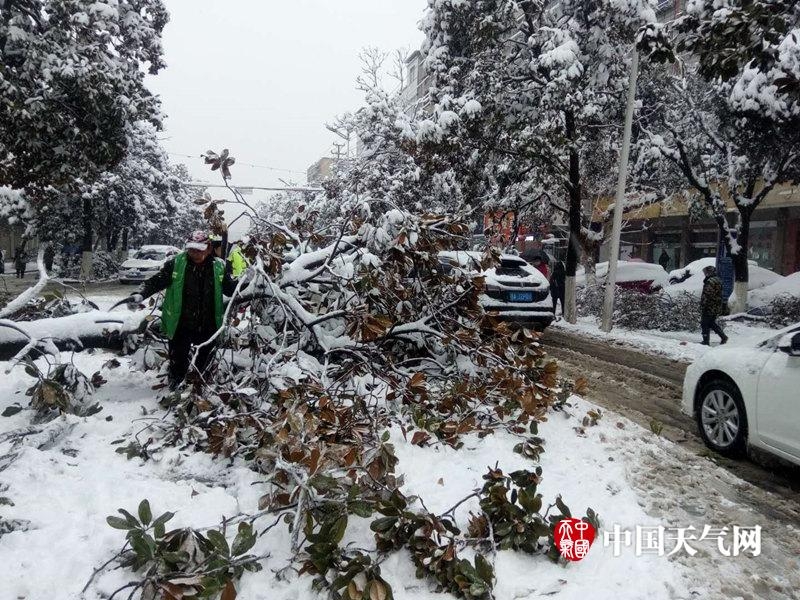 Tại Tương Dương, Hồ Bắc, nhiều cây cối bị gãy đổ khiến việc lưu thông tại đây gặp nhiều khó khăn.