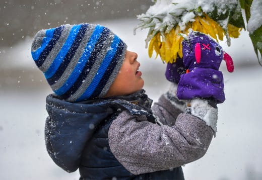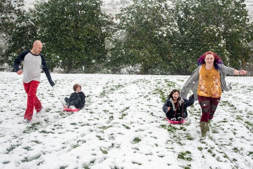 Trẻ em ở Missoula thích thú với tuyết rơi.