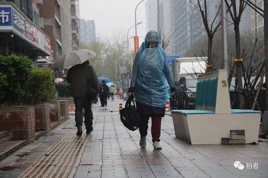 Người dân phải mặc mấy lớp áo, mặc thêm áo mưa để chống rét.
