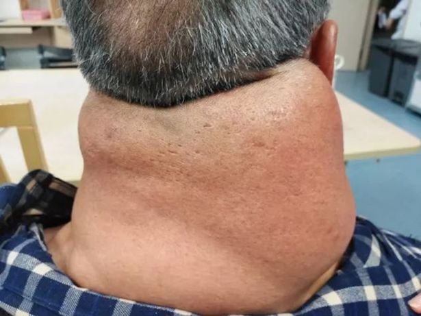 Từng tới bác sĩ thăm khám nhưng họ nói ông không nên lo lắng trừ khi các khối u ở cổ khiến ông đau hoặc gây khó thở. Cuối năm 2017, tình trạng này bắt đầu xảy ra.