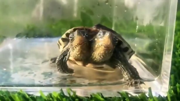Rùa con 2 đầu thuộc loài rùa tai đỏ, được phát hiện tại Viện cứu hộ Động vật hoang dã ở Thượng Nhiêu, tỉnh Giang Tây, Trung Quốc. Các nhà chức trách nói sẽ không thả con rùa 2 đầu này vào tự nhiên vì khi ấy nó sẽ không tồn tại một mình mà có thể tác động không mong muốn tới những con rùa khác.
