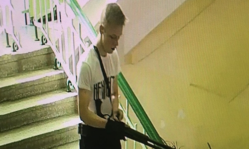 Hình ảnh từ camera an ninh cho thấy Vladislav Roslyakov mang súng vào trong trường. Ảnh: Twitter