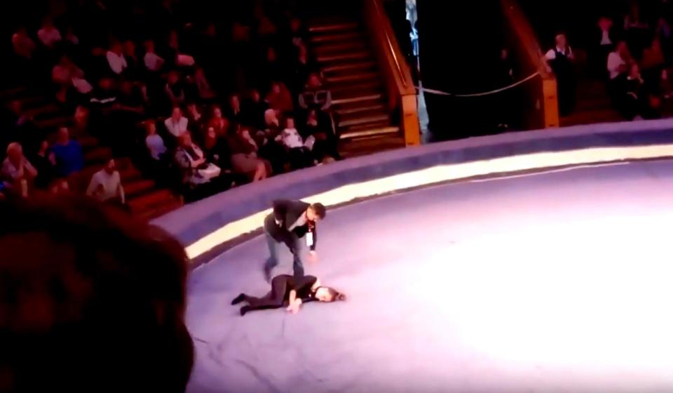 Video diễn viên xiếc bị tuột dây ngã bất tỉnh trên sàn sân khấu.