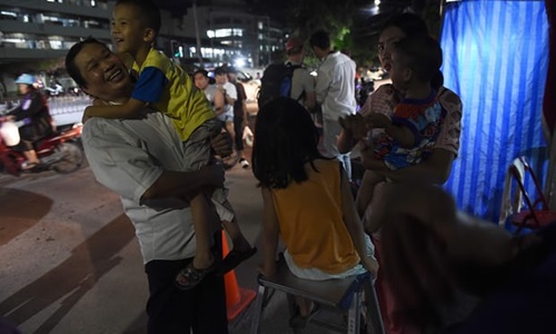 Người dân sống gần bệnh viện Chiang Rai, nơi các thành viên đội bóng nhí Thái Lan được đưa tới sau khi thoát khỏi hang, bày tỏ vui mừng vì thành công của chiến dịch giải cứu. Ảnh: AFP.