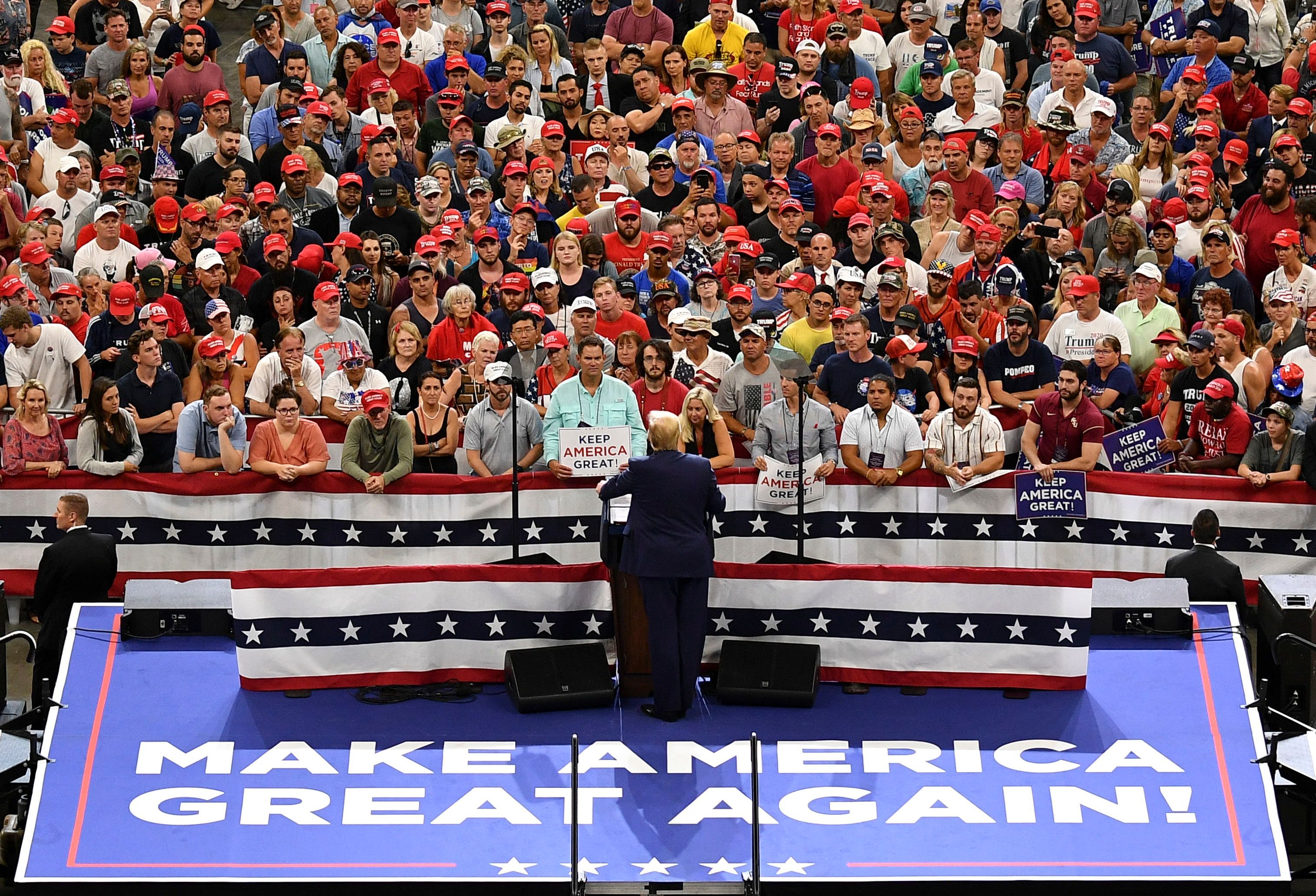 Tổng thống Trump đã dành vài phút trong cuộc vận động cử tri để thăm dò ý kiến của họ về khẩu hiệu cho chiến dịch năm 2020: “Làm cho nước Mỹ vĩ đại” hay “Giữ nước Mỹ vĩ đại”. Đám đông sau đó hô vang “Giữ nước Mỹ vĩ đại”.