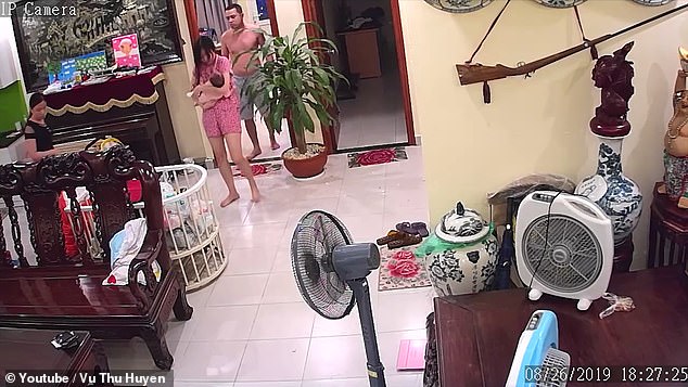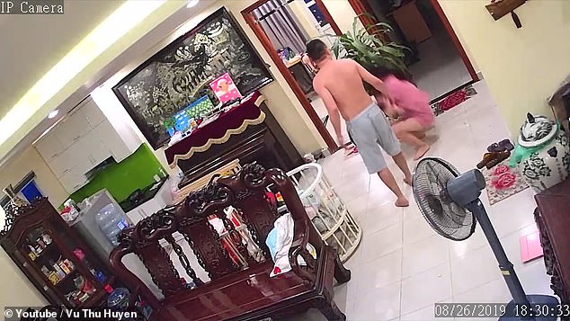 Đoạn clip đánh vợ của Vinh được CCTV của gia đình ghi lại.