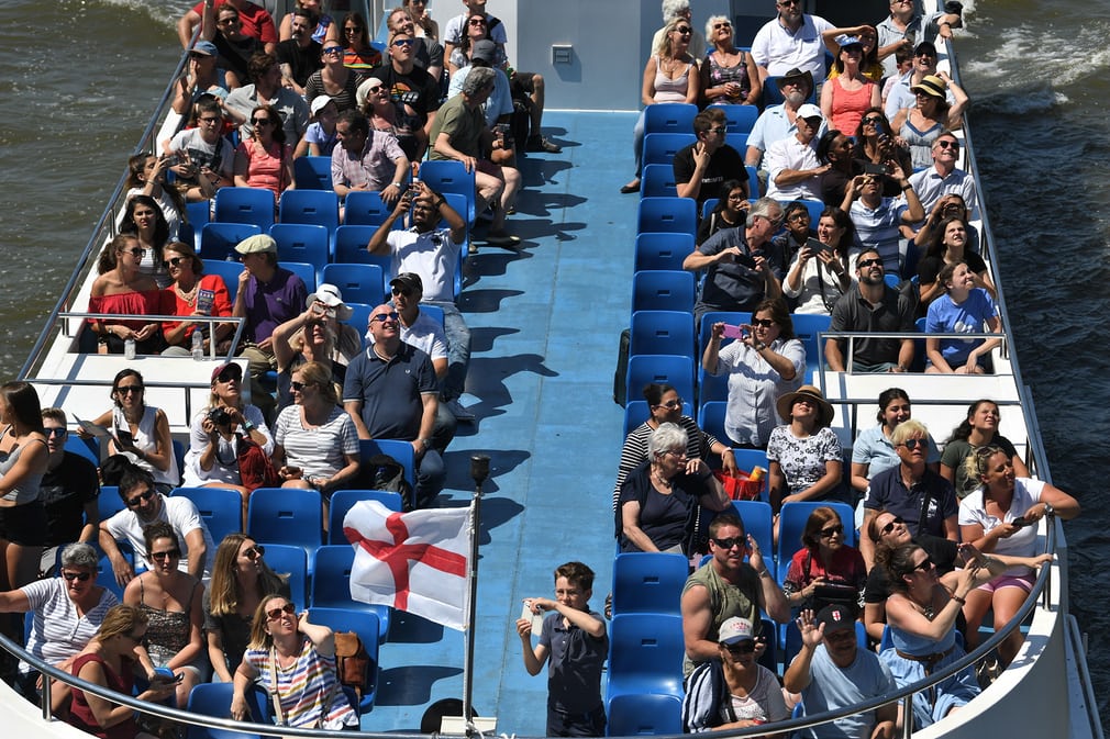 Du khách tận hưởng cái nắng trên chiếc du thuyền dọc con sông Thames. Ảnh: Victoria Jones