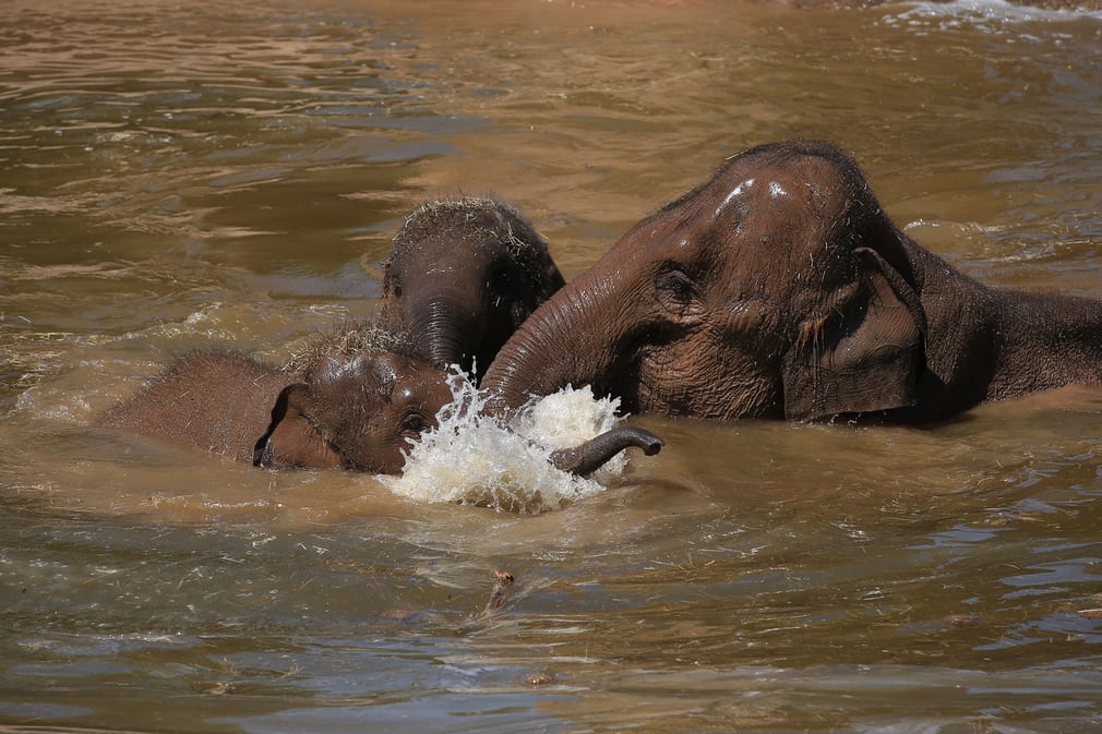 Tại vườn thú Chester, những con vật cũng vùi mình xuống nước để làm mát cơ thể. Ảnh: Peter Byrne