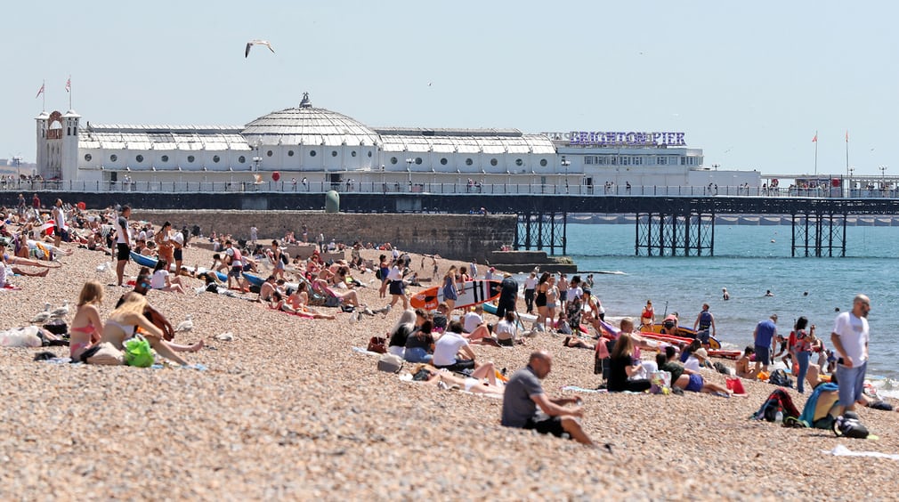 Người dân tranh thủ phơi mình dưới nắng tại bờ biển Brighton. Ảnh: Gareth Fuller