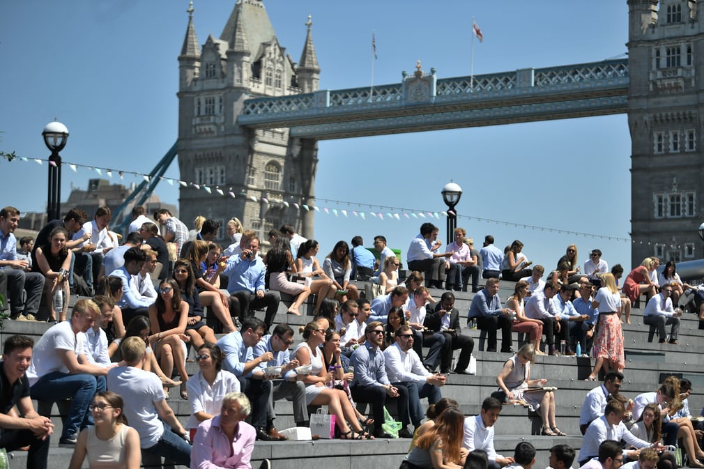 Người dân London nghỉ trưa dưới ánh nắng tại khu vực gần chiếc cầu Tower Bridge. Ảnh: Victoria Jones/PA