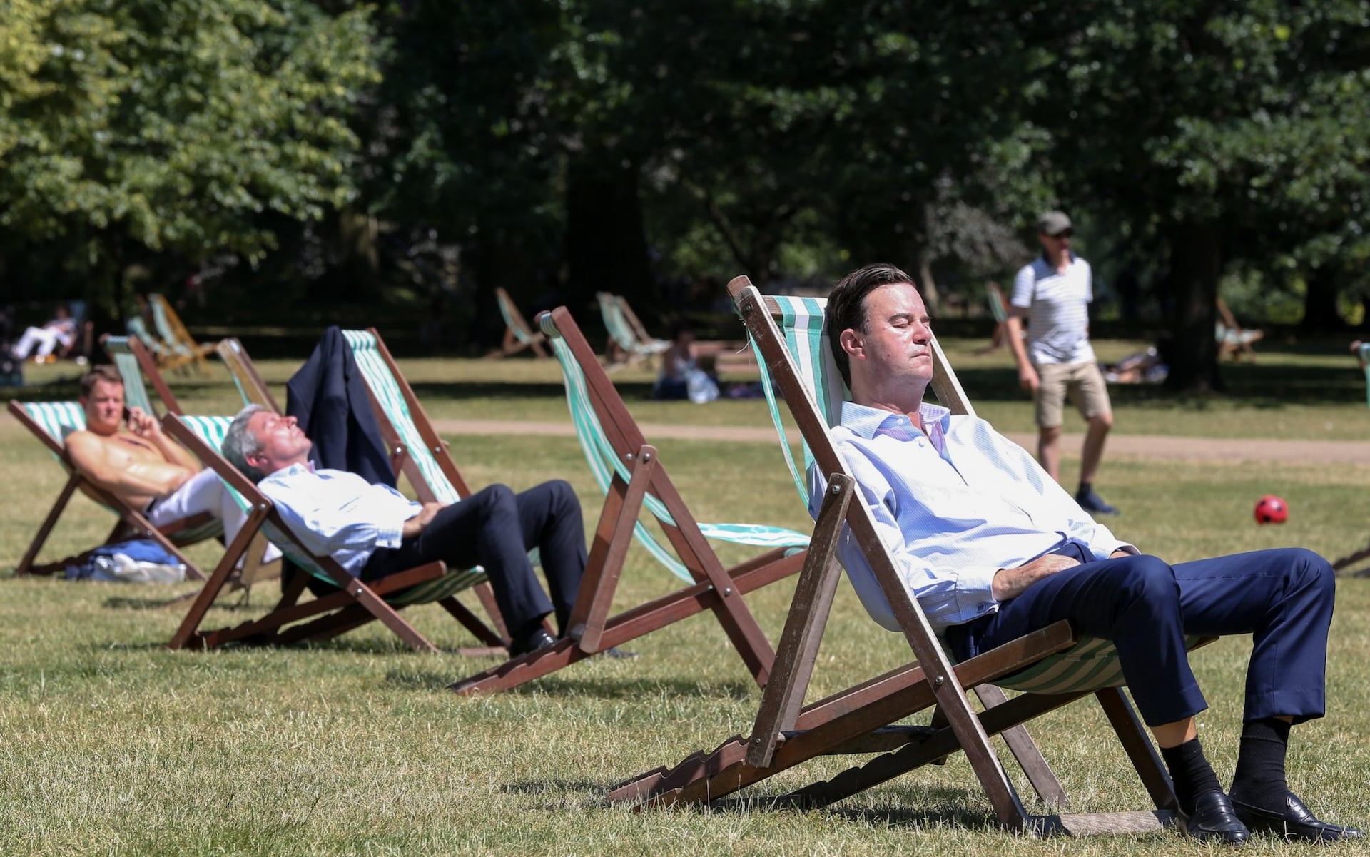 Những giây phút nghỉ ngơi trong ngày dưới cái nắng vàng hiếm có ở London. Ảnh: Dinendra Haria