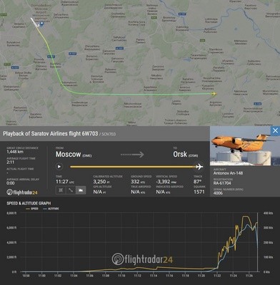 Trang tin Sputnik của Nga cho biết, sau khi máy bay Antonov An-148 của Nga mất liên lạc với trạm kiểm soát không lưu, máy bay đã rơi với vận tốc 112 mét/giây xuống đất.