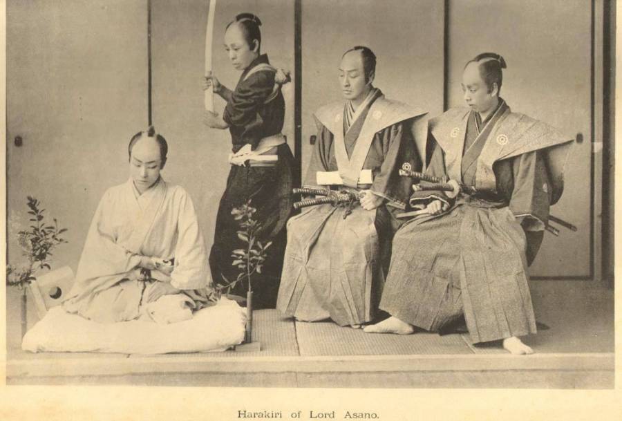 Ngay sau khi người võ sĩ tự mổ bụng mình, một người đứng bên cạnh sẽ nhanh chóng chặt đầu vị võ sĩ. Ảnh minh họa: Library of Congress