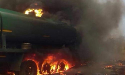 Hiện trường một vụ xe bồn cháy. Ảnh: Twitter.