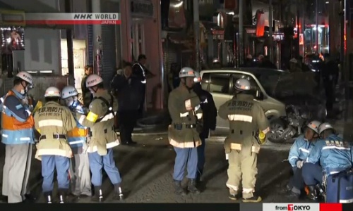 Lực lượng an ninh Nhật Bản xem xét hiện trường. Ảnh: NHK.