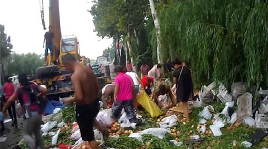 Cảnh sát địa phương đã đến hiện trường và nhìn thấy hơn 20 người dân, chủ yếu là phụ nữ lớn tuổi, đang cố gắng nhồi nhét những quả đào đang lăn lóc tràn đầy trên đường vào túi của họ. Người lái xe tải không thể can ngăn hay bảo vệ được số hàng trên do anh đang bị thương nặng trong vụ tai nạn.