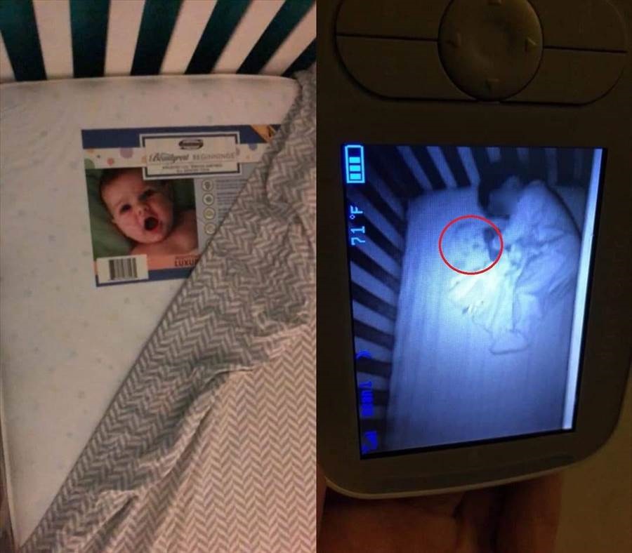 Một người dùng chia sẻ sau khi anh đăng tải bức ảnh con mình cùng chiếc giường mới mua cho con trên mạng xã hội. Những người bạn của vợ anh nói rằng chắc chắn trong căn phòng có quỷ bởi chiếc đệm bên cạnh con anh xuất hiện một gương mặt em bé kỳ dị.