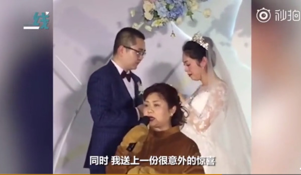 Sau khi nhìn thấy gương mặt của mẹ, cô dâu không cầm nổi nước mắt, ôm chầm lấy mẹ và khóc nức nở. Nén lại cảm xúc, mẹ cô dâu quay lại phát biểu trước mặt quan khách: “Tôi hy vọng con gái tôi có một cuộc sống hạnh phúc, vui vẻ. Đồng thời, tôi cũng đã gửi một món quà bất ngờ tới con gái và con rể. Cảm ơn mọi người“.